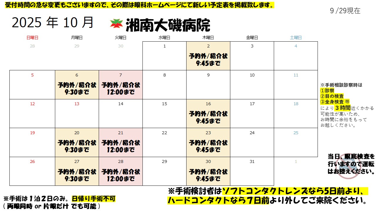 ➡白内障手術に力を入れており、3週間以内には手術可能です。